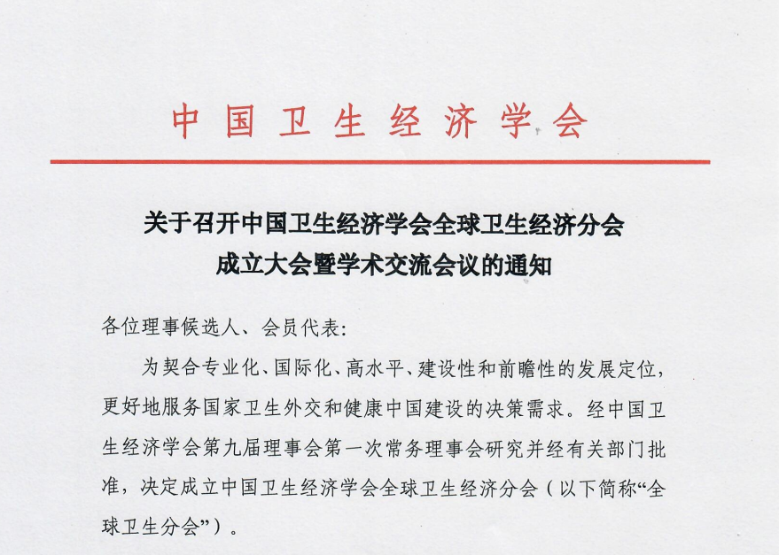 关于召开中国卫生经济学会全球卫生经济分会成立大会暨学术交流会议的通知