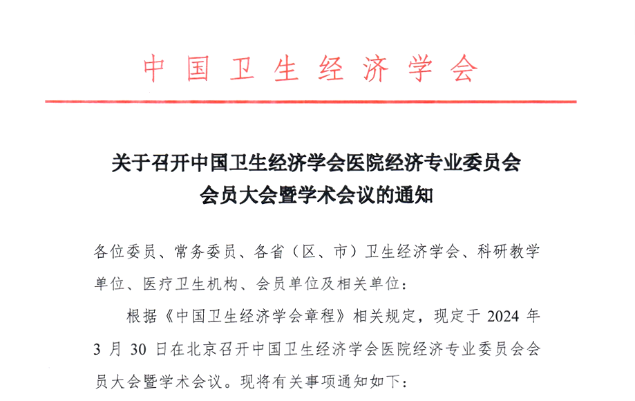 关于召开中国卫生经济学会医院经济专业委员会会员大会暨学术会议的通知