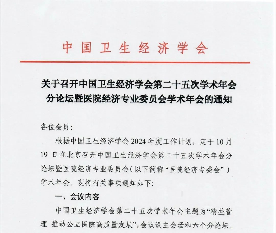 关于召开中国卫生经济学会第二十五次学术年会分论坛暨医院经济专业委员会学术年会的通知