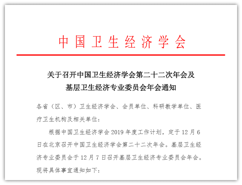 关于召开中国卫生经济学会第二十二次年会及基层卫生经济专业委员会年会通知