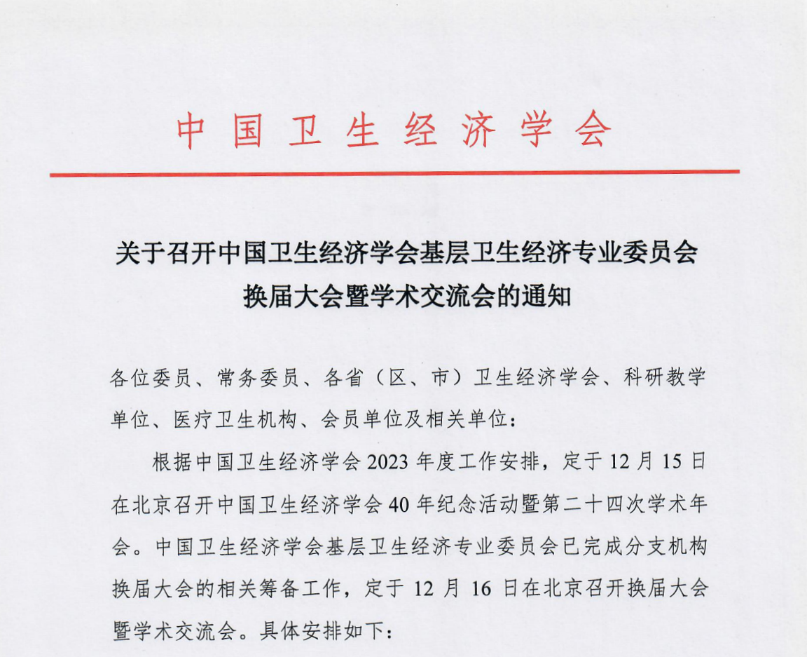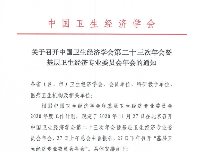 关于召开中国卫生经济学会第二十三次年会暨基层卫生经济专业委员会年会的通知