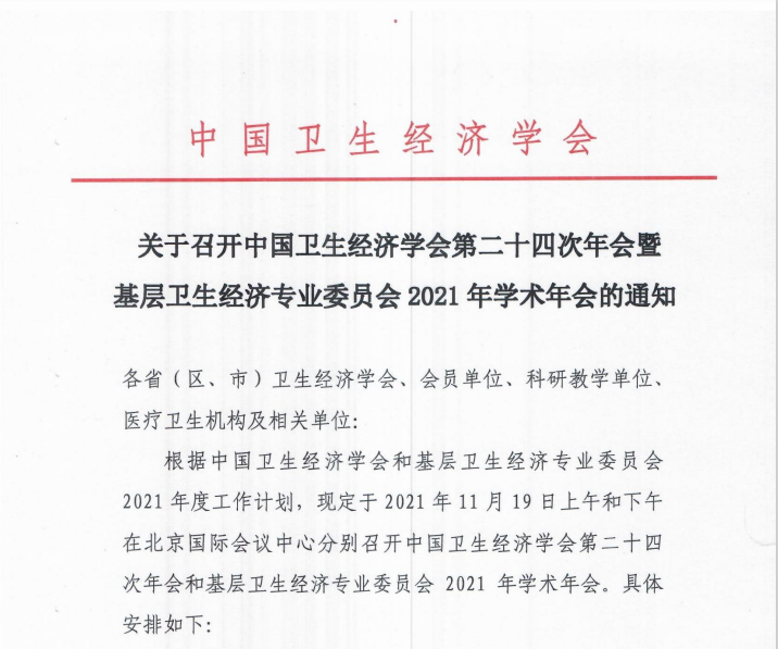 关于召开中国卫生经济学会第二十四次年会暨基层卫生经济专业委员会2021年学术年会的通知