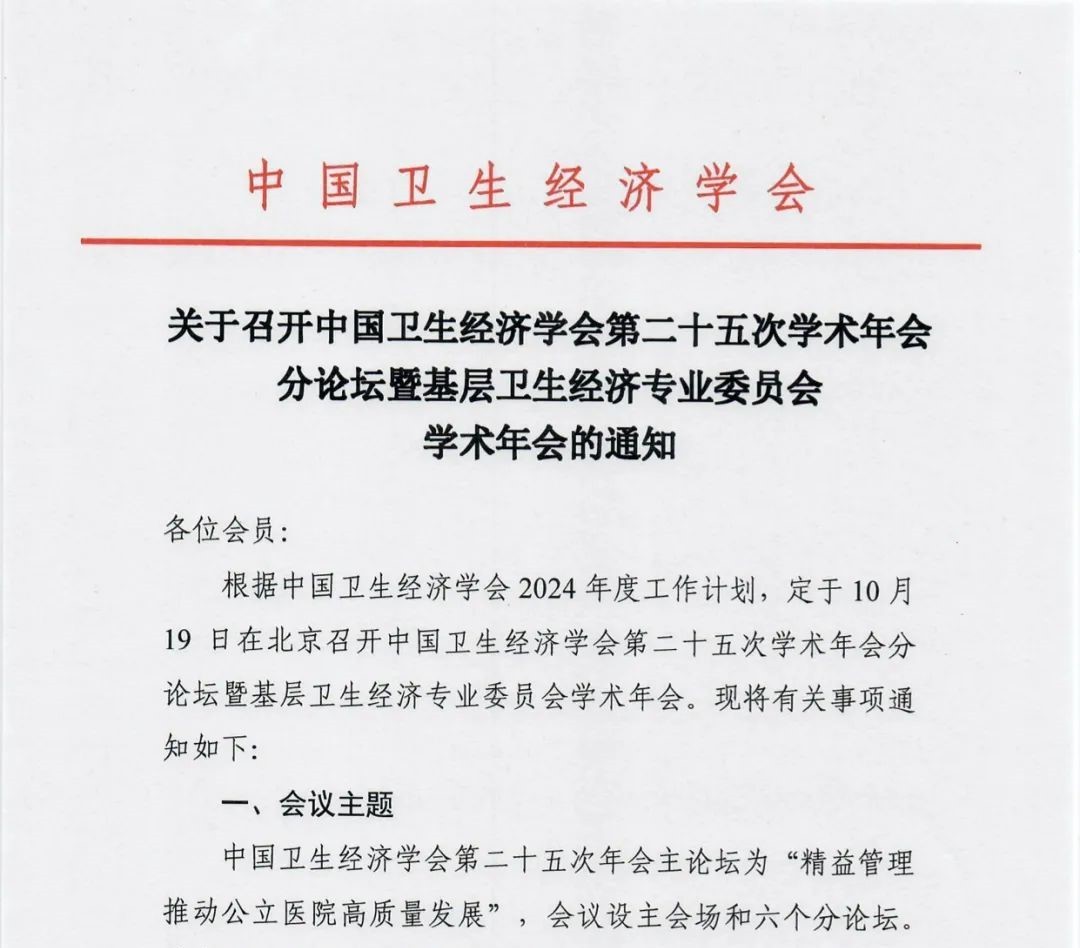 关于召开中国卫生经济学会第二十五次学术年会分论坛暨基层卫生经济专业委员会学术年会的通知