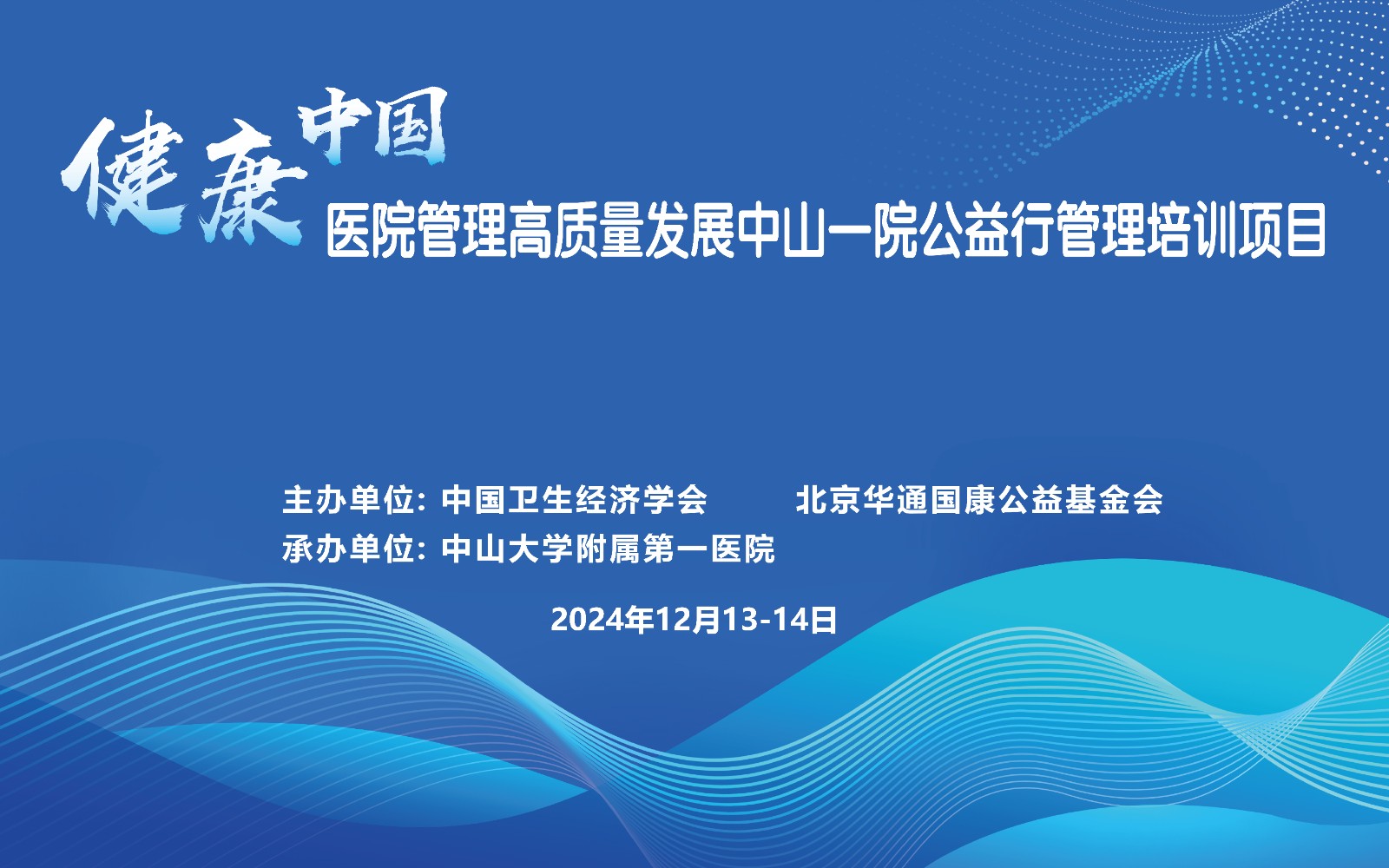 2024年12月13日-14日,由中国卫生经济学会联合北京华通国康公益基金会主办,以公立医院高质量发展为主题的“健康中国——医院管理高质量发展中山一院公益行管理培训项目”圆满完成。