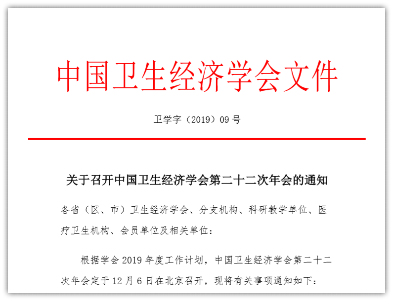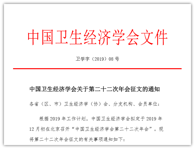 中国卫生经济学会拟定于2019年12月初在北京召开“中国卫生经济学会第二十二次年会”。本次大会将围绕“加快供给侧结构性改革,推进健康中国建设”主题在全国征集论文。